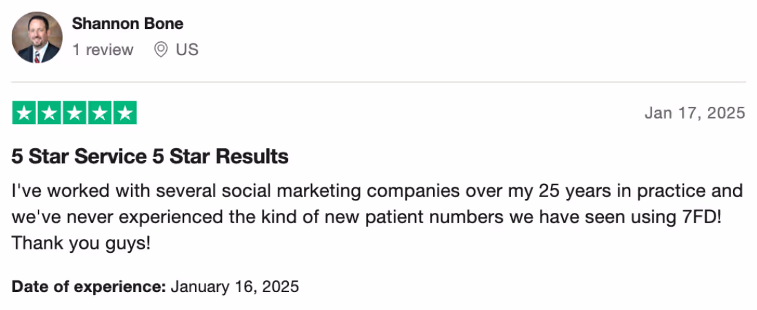 "Since partnering with Seven Figure Docs, the response has been overwhelming; their understanding of medical practices and quality content have led to more leads and paid patients than we've ever experienced with other services—highly recommended!"